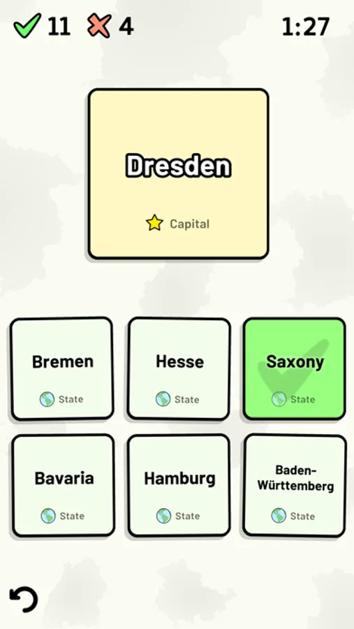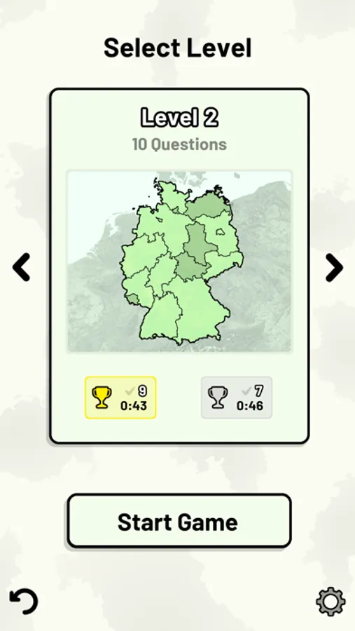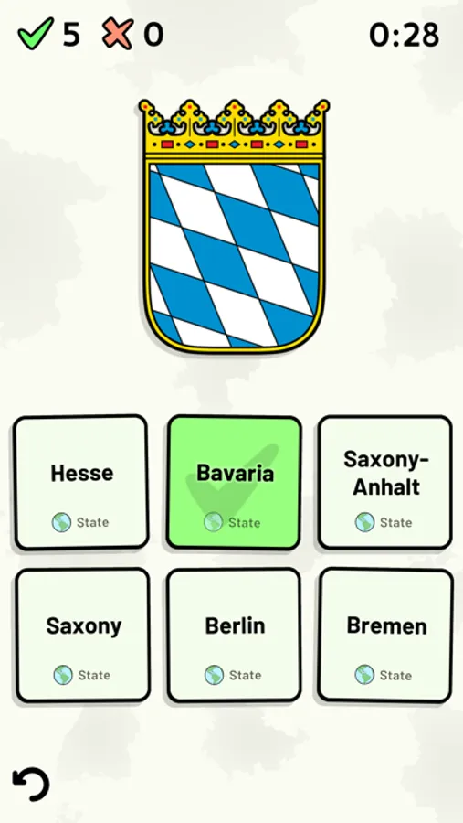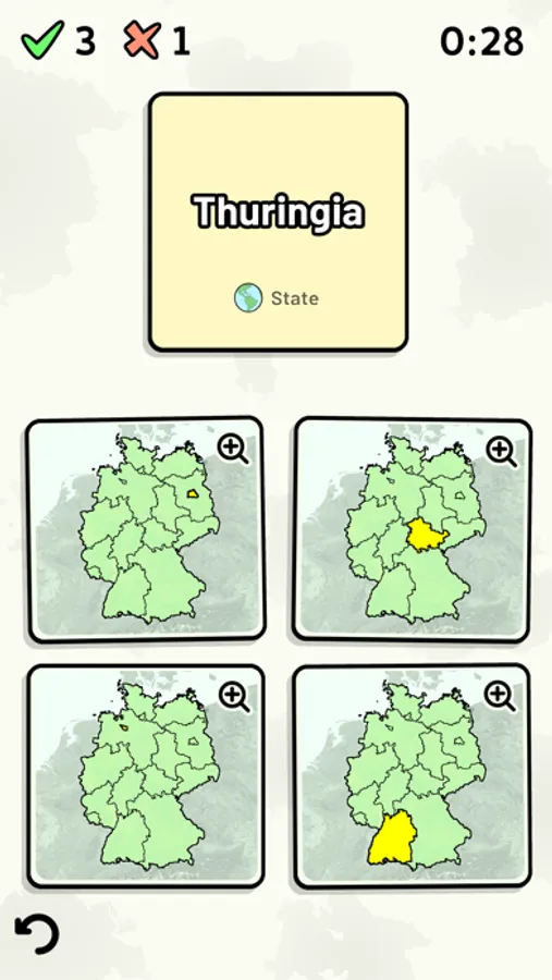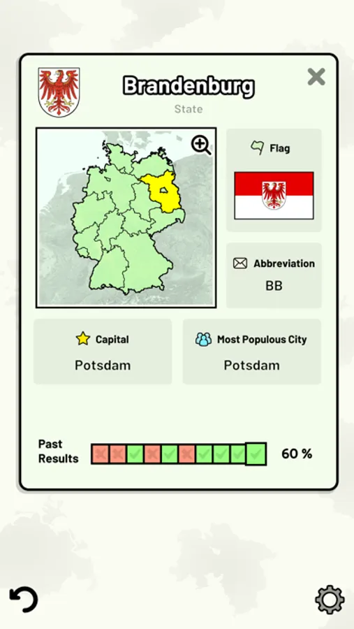 Customizable quizzes allow you to choose which states to test, as well as the topic. Past results for each state are displayed to highlight your progress at each topic.