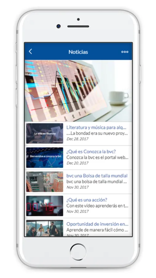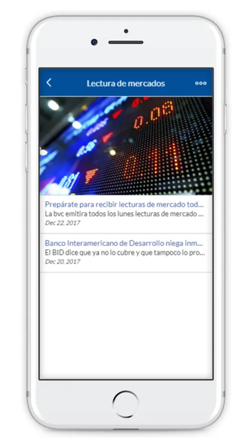 - La aplicación incluye documentos de apoyo relacionados a temas financieros, noticias de los mercados relacionados, herramientas de apoyo para conocimiento sobre el mercado de capitales (Simulador de negociación), asistencia virtual, tendencias, gráficas del mercado, entre otras.