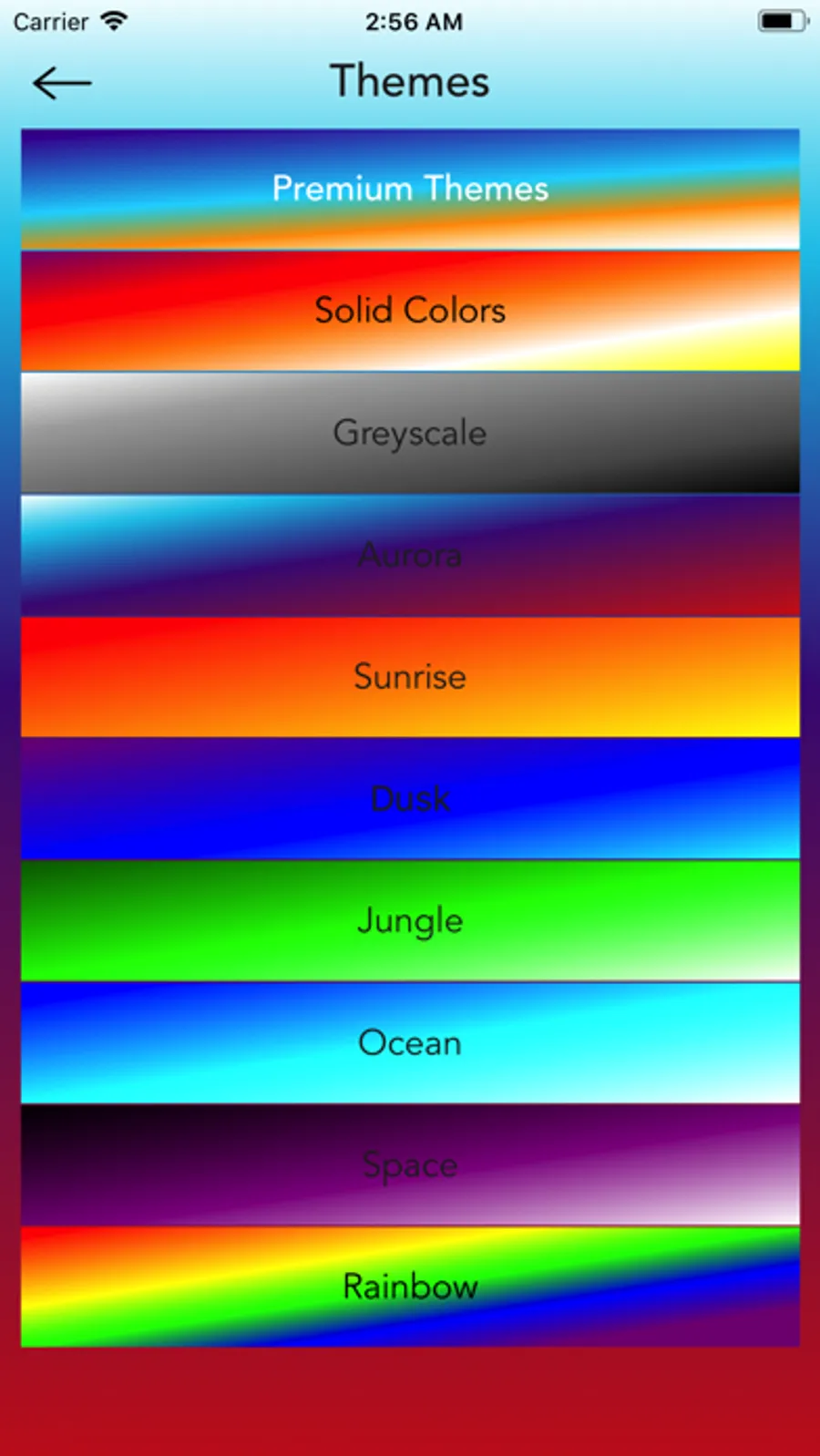 Premium custom themes now available as an in-app purchase! Create custom gradient themes with up to 6 different colors and 3 gradient configurations. Create custom themes using your own images. You can look at your dog, cat, mouse, zebra, mongoose... every time you have to perform a simple calculation!