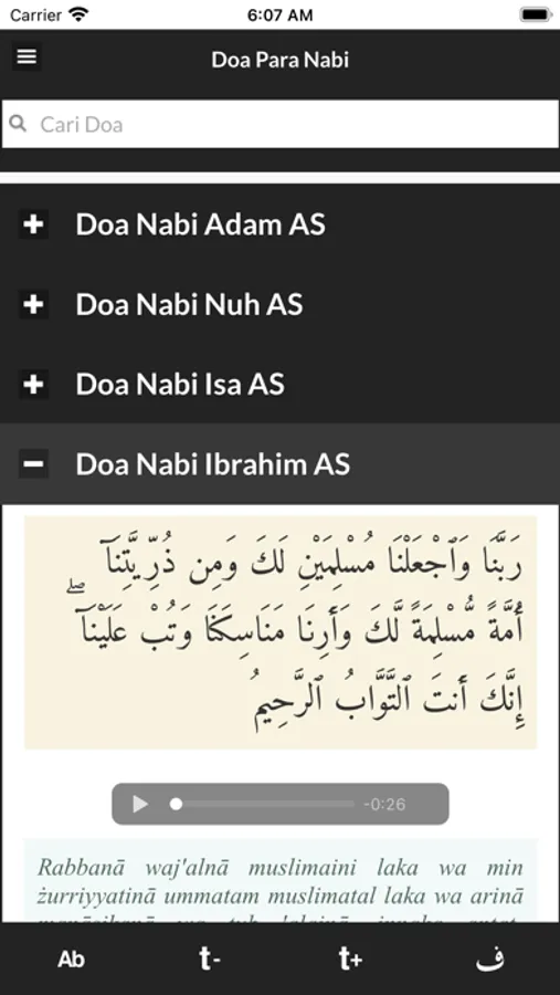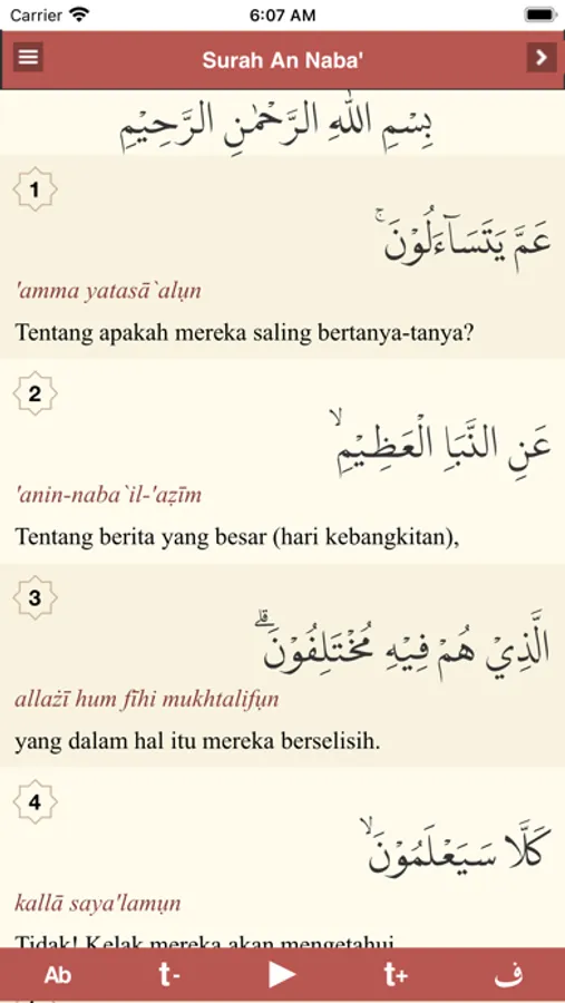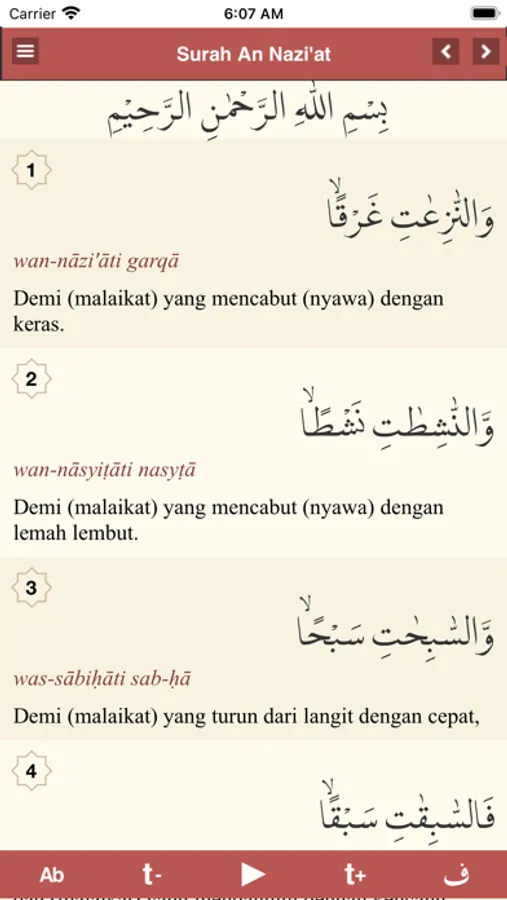 - Teks Bacaan Arab dan Audio Murottal yang bisa diputar