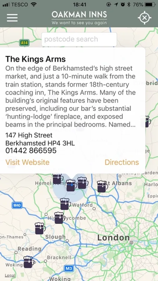 An app for fun and function! Look up our sites, play a daily quiz, look up daily facts, see if you could be one of us and send us a selfie from an Oakman Pub!