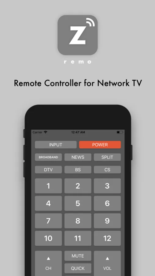 "Z-remo" is an application that sends remote control information to a specified IP address. Specific TV operations can be performed over the network.