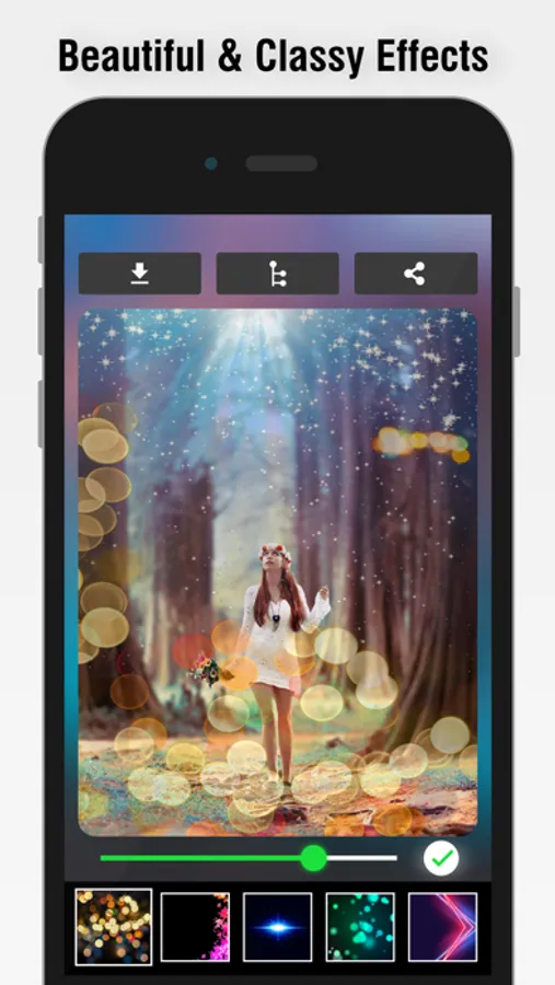 Bokeh Effect Photo Editor provides you numbers of effects to update your photo and make your photo more beautiful. You can create your photo like nature welcomes you by bokeh shower. Modified your photos with some other special effects and give different look to your photo. share photo with your friends on Facebook, Twitter, Instagram, WhatsApp and other social networks.