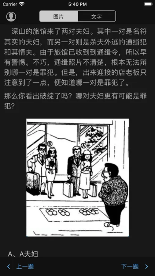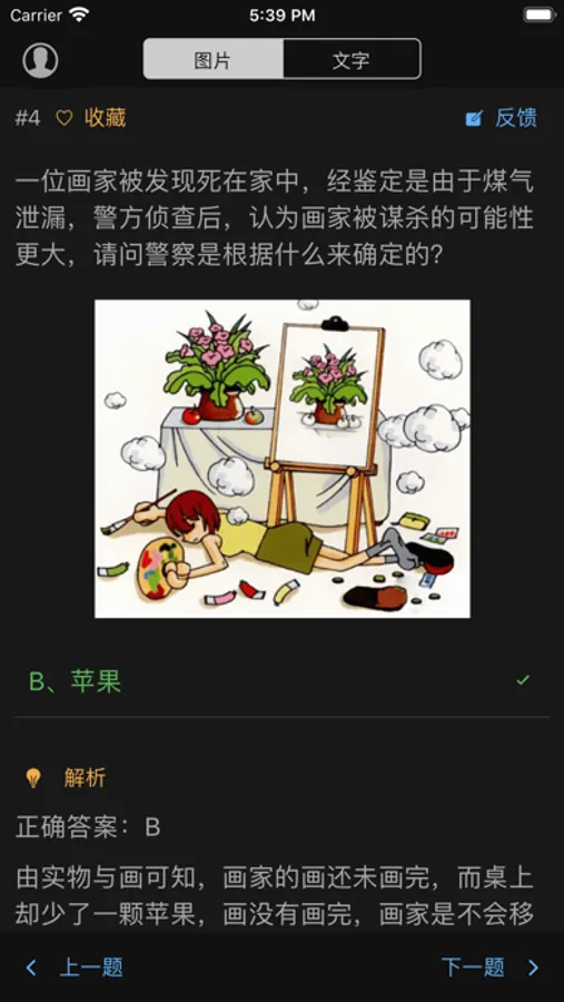 题目分图片和文字类型,每一题都有详细的解析,如果你能够不看解析就能侦破案件的话,那你很棒棒哦!