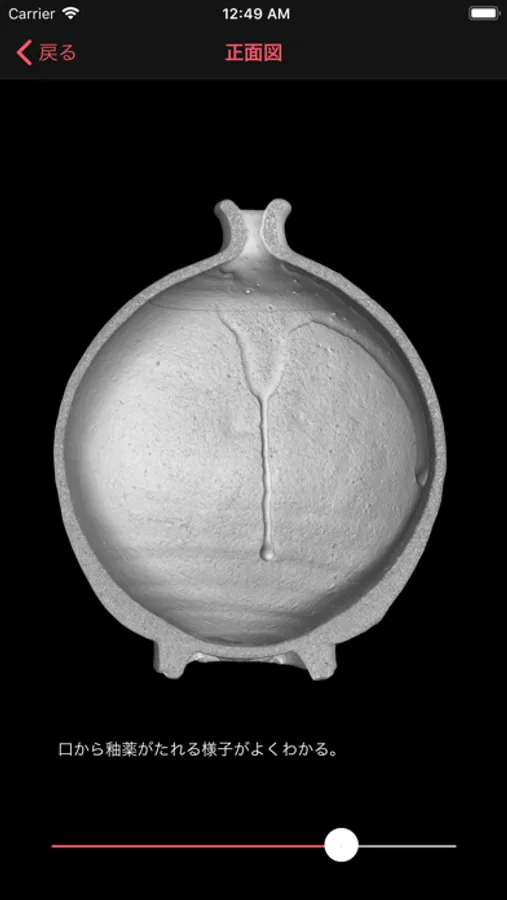 − CTスキャン画像 陶磁器の内部構造を、その閲覧ポイントとともに見ることができます。