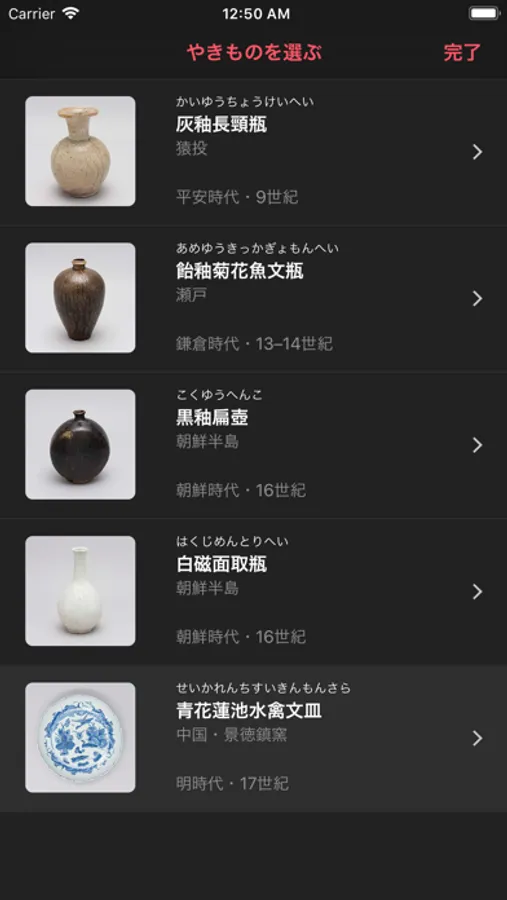 − 5点の陶磁器について、基本情報と解説を閲覧できます。