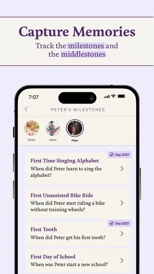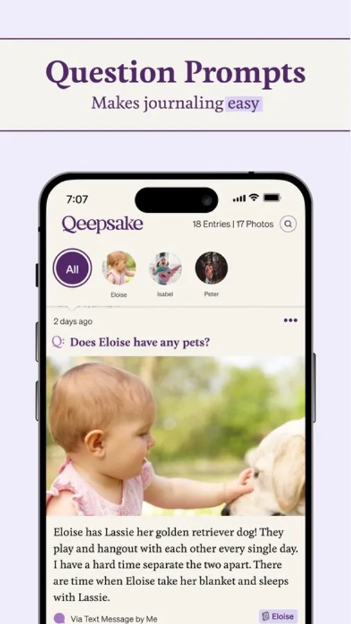 - Qeepsake sends you personalized, age-informed question prompts for any number of children