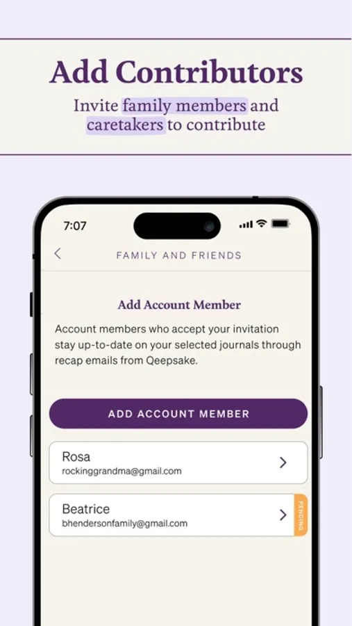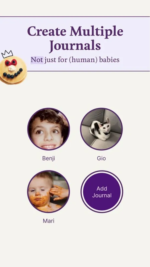 - Share access with your spouse or other contributors to add to your child’s journal