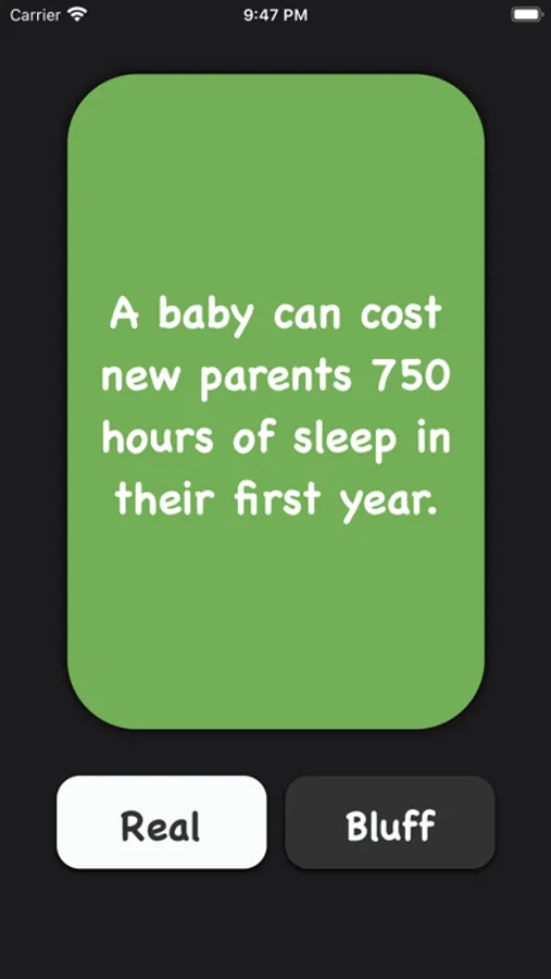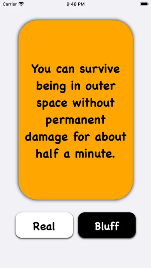 Play the brand new RealOrBluff game which contains 100 fun facts and bluffs to entertain both your friends or family.