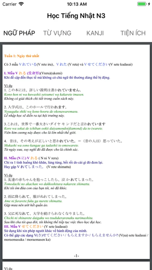 - Liệt kê các mẫu ngữ pháp tiếng Nhật N3
