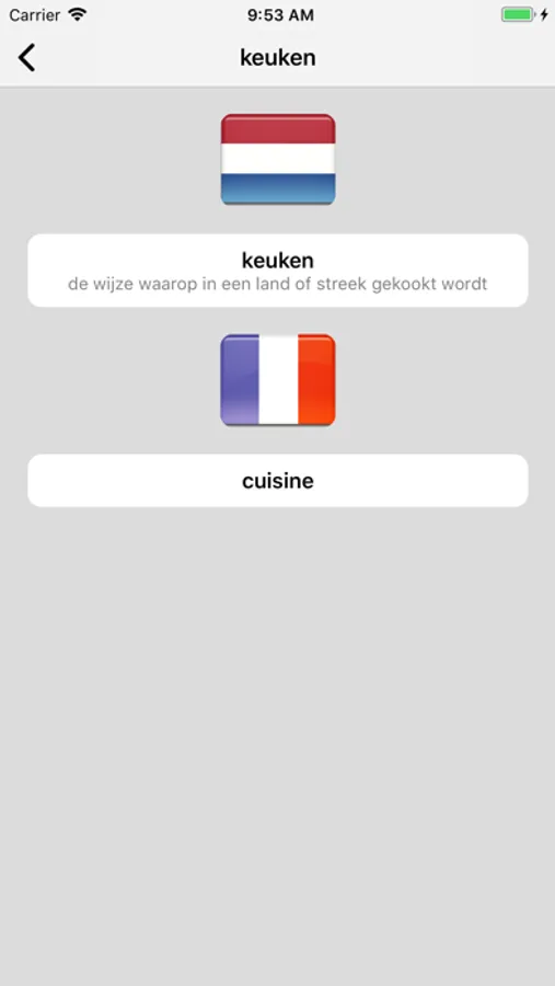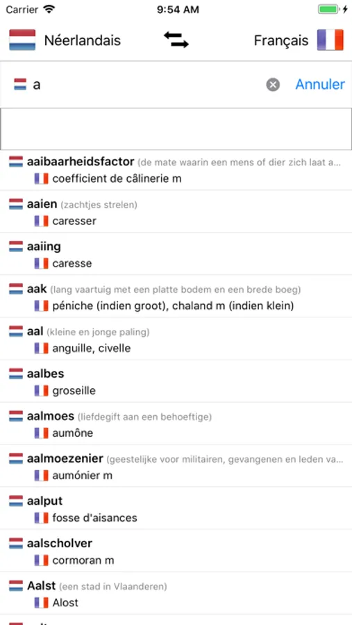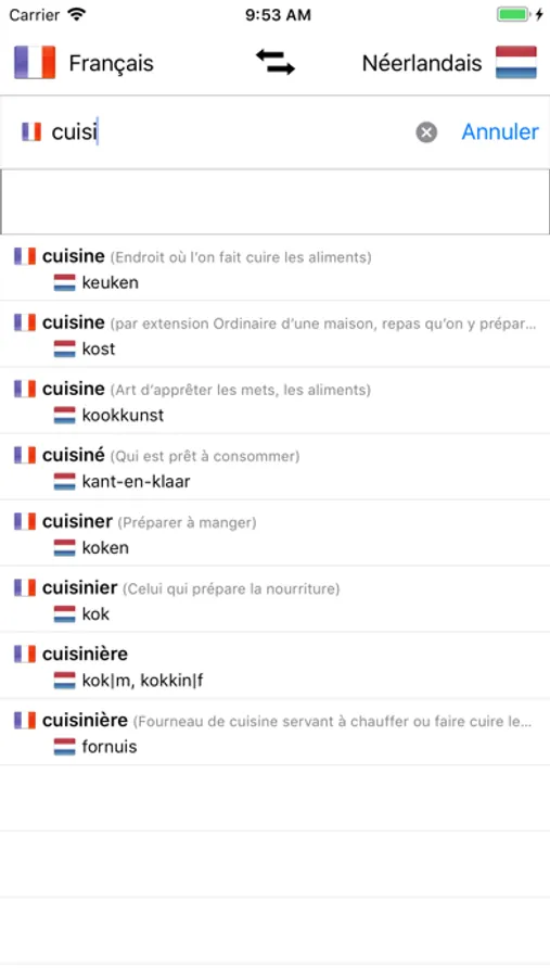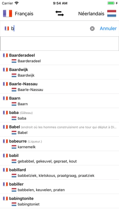 - Recherche à partir des mots en français et à partir des mots en Néerlandais