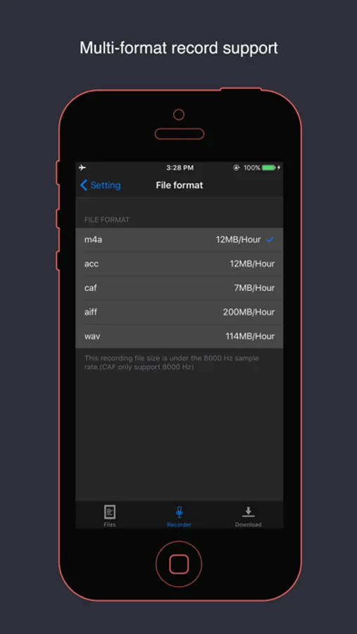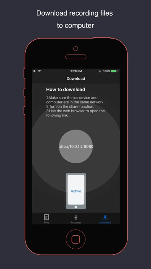 - Backup recording files to computer(access record files through Wi-Fi or iTunes).