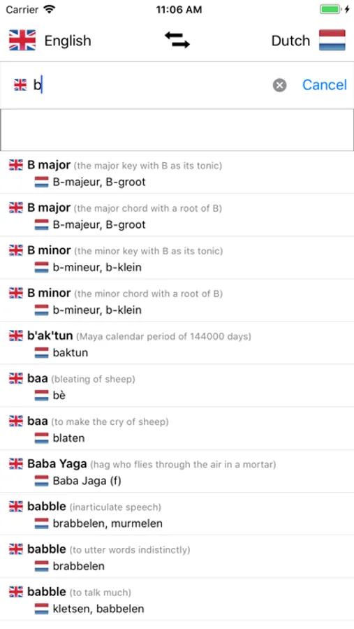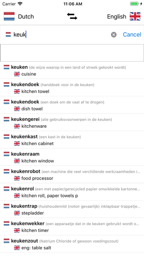 - Search from Dutch words and from English words