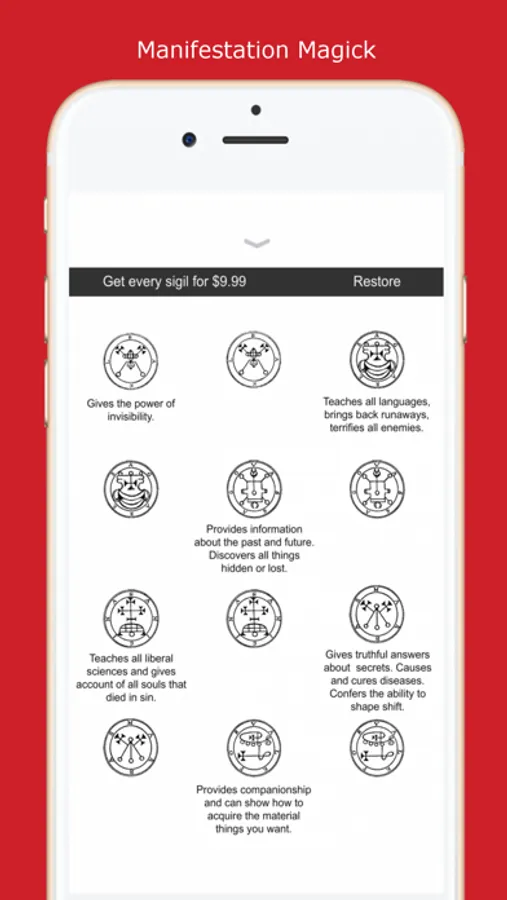 Manifestation Magick combines elements of medieval Goetic magick with modern manifestation techniques. This new synthesis is unlike anything else available on the App Store. This system will allow users to use sigils (magical symbols that represent immensely powerful entities) to help manifest their deepest desires.