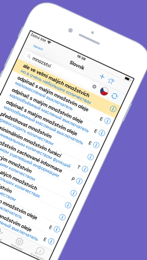 • Slovník umožňuje také výuku neznámých slov. Slova a slovní spojení, která ve slovníku označíte (vložíte do Oblíbených), se tak můžete učit s využitím pokročilého výukového algoritmu.