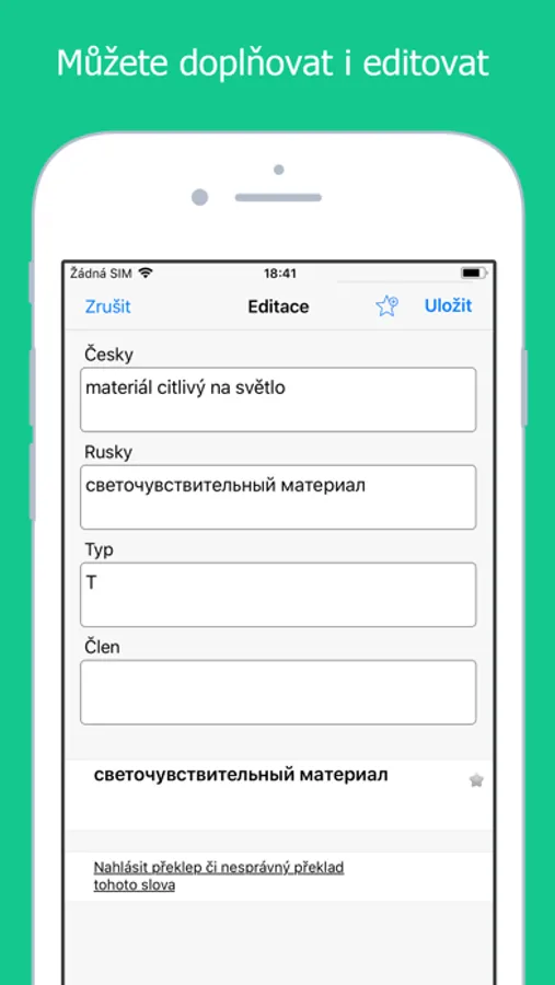 • Tento slovník je editovatelný! Do slovníku lze přidávat vlastní slova a poznámky a také editovat stávající slovní zásobu.