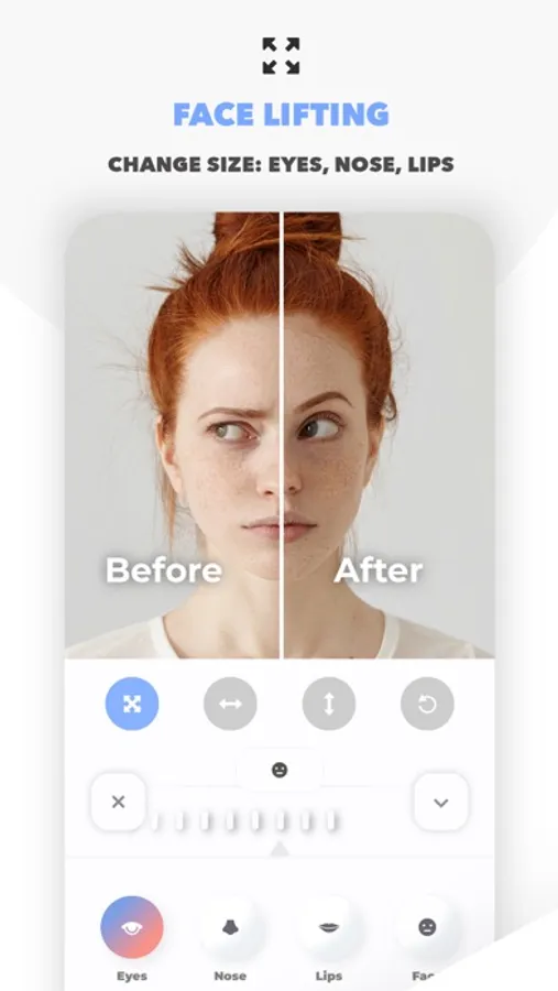 - Editing facial features on photo (Change size eyes, nose, lips).