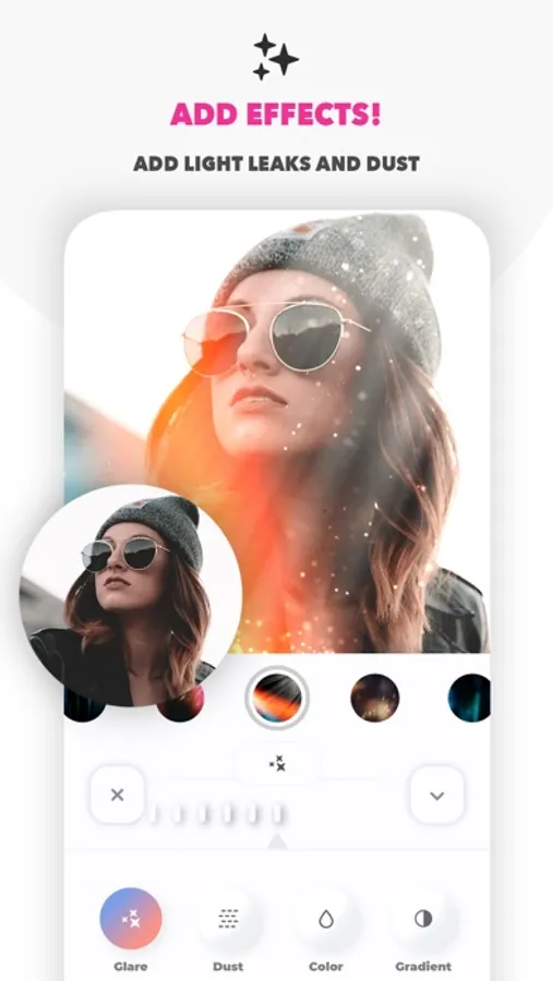 - Change saturation, brightness, contrast, exposure, gamma, sharpness, vignette, temperature and etc.