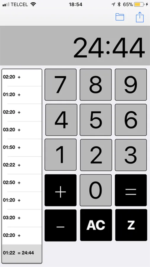 All pilots must document their flight-time in the personal logbook. The time is logged as hours and minutes and summed up at the end of every page. This calculator is designed to easily sum up flight time given in the format hh:mm. Ordinary calculators only work on decimals and it is always tricky to sum up lots of log-entries correctly.