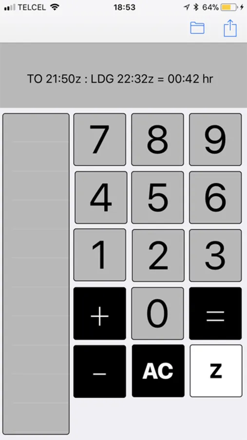 Simply enter the flight hours-minutes line by line and the calculator adds them.