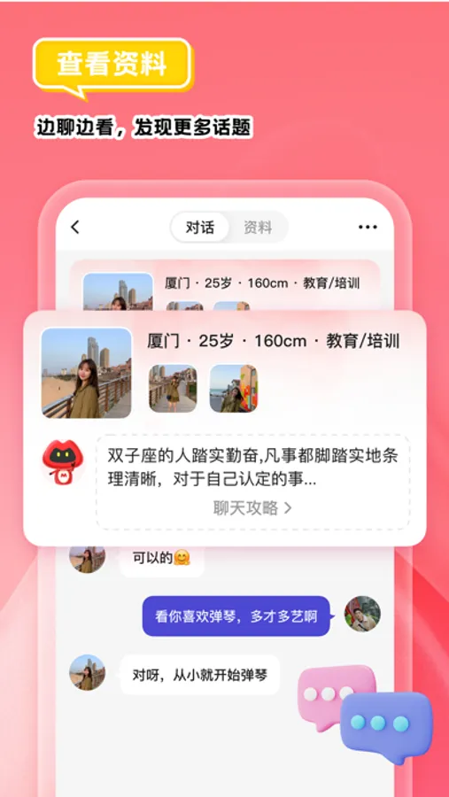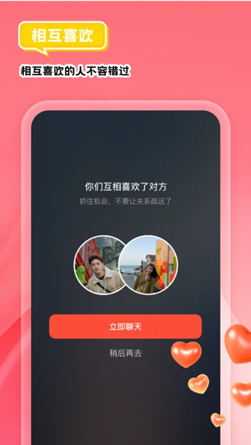 -即聊即回:开启良缘速配,自动匹配当前活跃用户,聊天秒回,不辜负每一份期待。