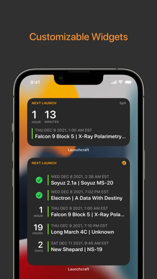 • Customizable Widgets: Quickly view the next launch from your Home Screen and Lock Screen