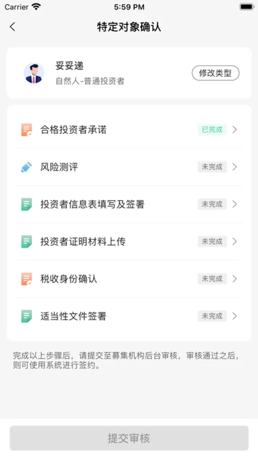 1、发起预约订单:投资者可以通过APP在管理人的主页中选择要签约的产品并发起预约订单。