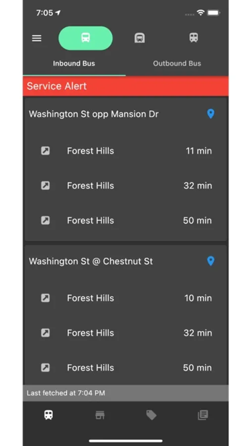 1. Locate MBTA stops and arrivals of all transits (Bus,Subway, and Commuter Rail) in real time based on your current location