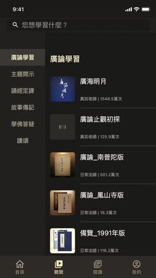 - 我的功課:聽帶、背書、誦經、開示影片,都可放入個人學習清單。