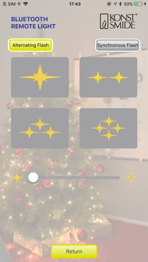 This app is for some of Konstsmide’s Christmas light sets and is controlled via Bluetooth. It can adjust different modes of the light sets and can also set timer, flash and flash with music.
