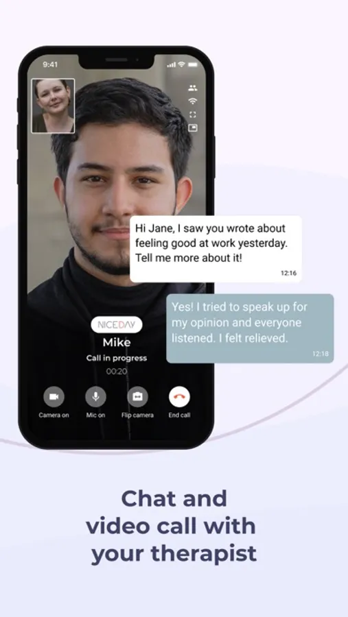 ● Start your mental health journey by yourself, or use NiceDay as an online therapy tool with a professional.