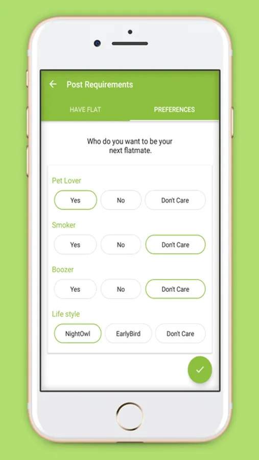 FlatMate quite tactfully and skillfully works to provide you with FlatMate/RoomMate/FlatBuddy of your taste keeping the compatibility as the numero-uno factor in searching your roommate who would be “Some one just like you!!!”. As a user, you can lay down your requirements and preference factor of an optimum roommate. For instance,