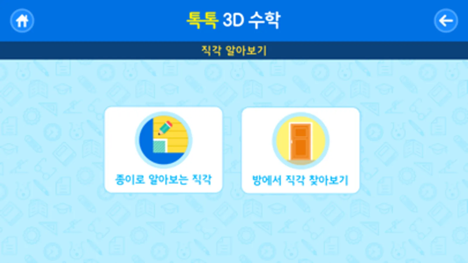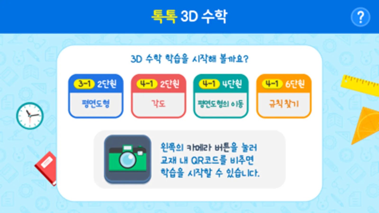 ‘톡톡 3D 수학’은 종이책을 벗어나 영상으로 직접 학습하는 교육용 어플리케이션입니다. 재미있는 3D 입체 영상 학습을 스마트폰이나 태블릿 PC에서 만나 보세요.