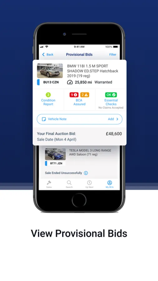 Please note: You need to be a registered BCA Trade Buyer to use this app and are for UK vehicles only. If you want to register with BCA as a trade buyer, please visit bca.co.uk/buy/register