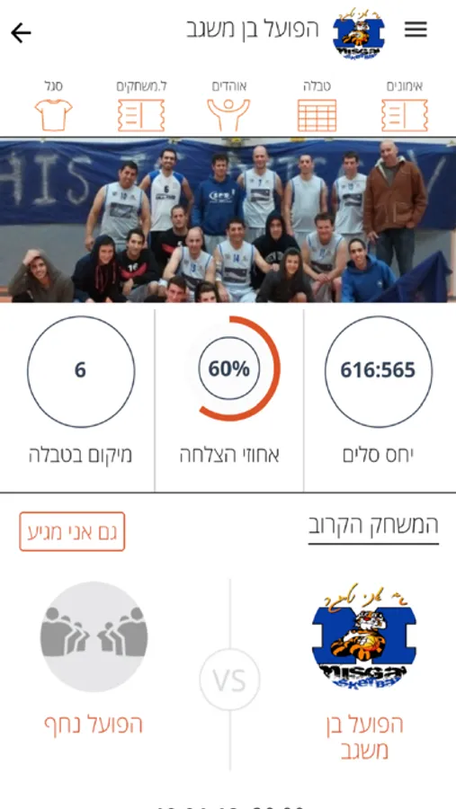 o דפי קבוצה – תצוגה של מיקום, אחוזי הצלחה ויחס שערים/סלים מצטבר, נתונים על המשחק הקרוב, סגל שחקנים ונתוני רישומי הגעה למשחק הקרוב.