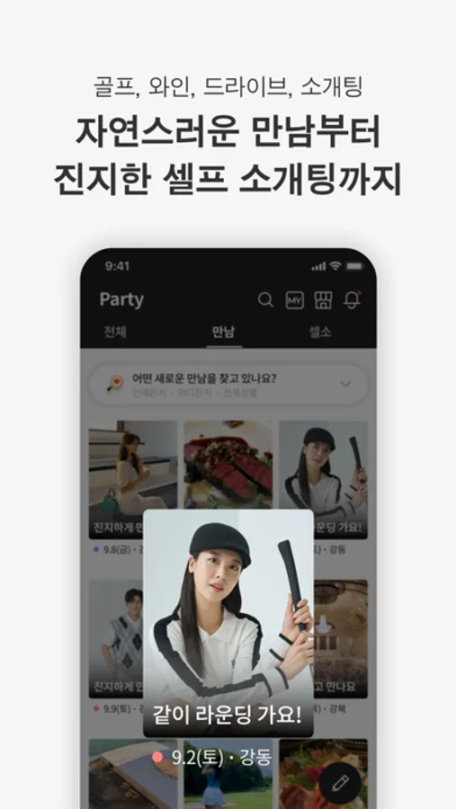 와인 파티, 골프 모임, 재테크 모임 등 회원님들의 관심사에 맞춘 다양한 만남이 매일 이루어지고 있습니다. 영향력있는 회원님들이 모여 폭넓은 인맥을 형성할 수 있고, 대화가 잘 통하는 상대와 자연스러운 만남이 일 평균 30,000건 이상 일어나고 있습니다.