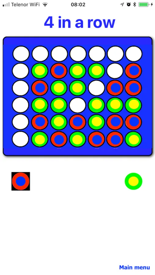- Play "4 in a row". (Four pieces in a row in any direction.)