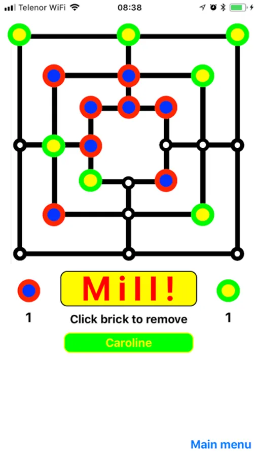 - Play "The Mill". (Three pieces in a row; take a piece!)