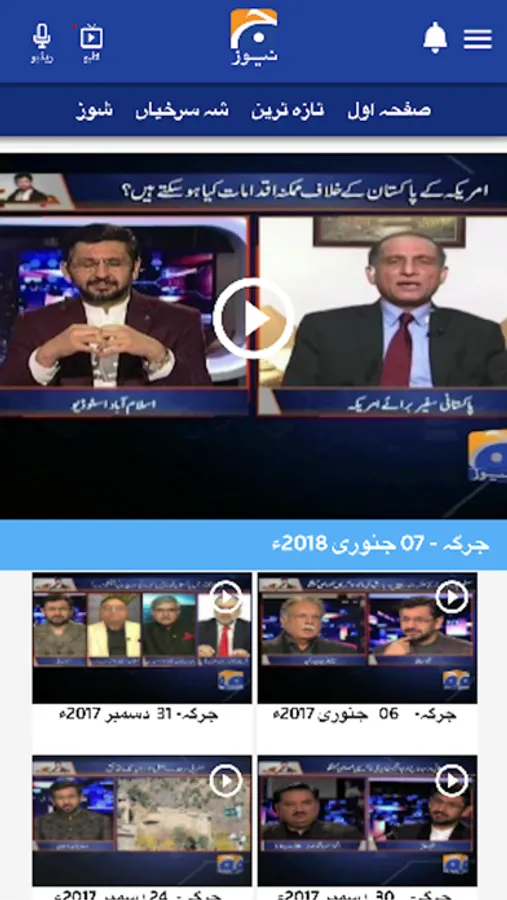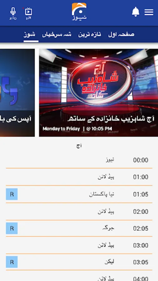اپنے پسندیدہ پروگرامز کا ہر جگہ ، ہر وقت بھرپور مزہ لیجئے جیسے آج شاہ زیب خانزادہ کے ساتھ، کیپیٹل ٹالک ، رپورٹ کارڈ، لیکن، آپس کی بات اور خبرناک ۔
