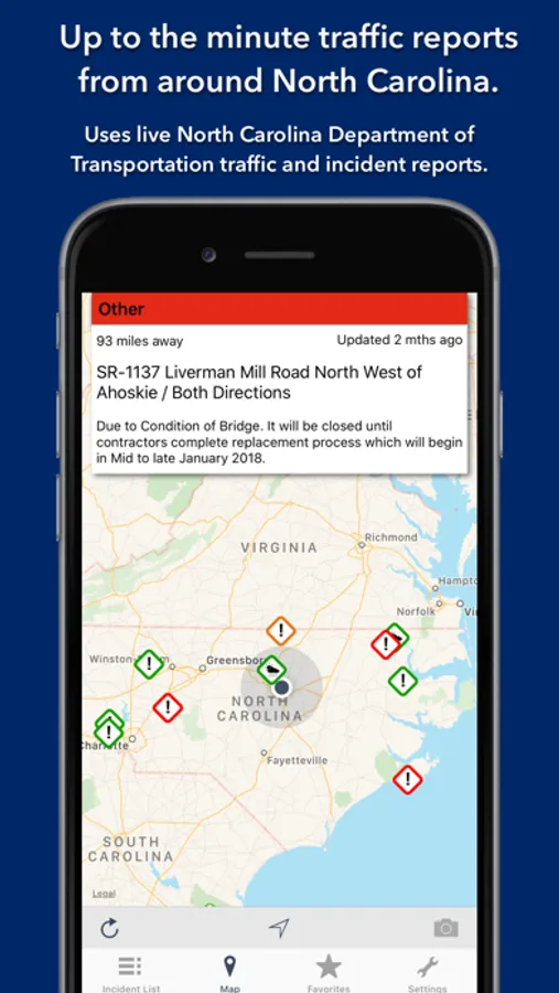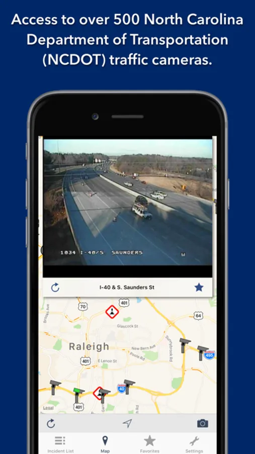 Live traffic reports and cameras for North Carolina. Save your favorite cameras for quick access. The Summer 2022 release includes dark mode and camera sharing.