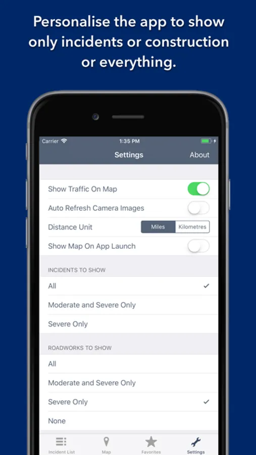 - Shows at a glance the nearest current traffic incidents without launching the app.