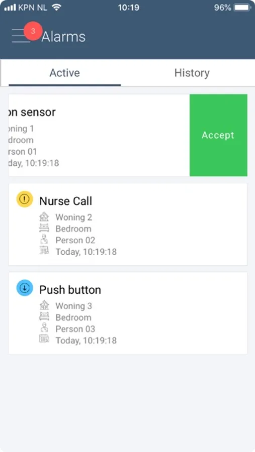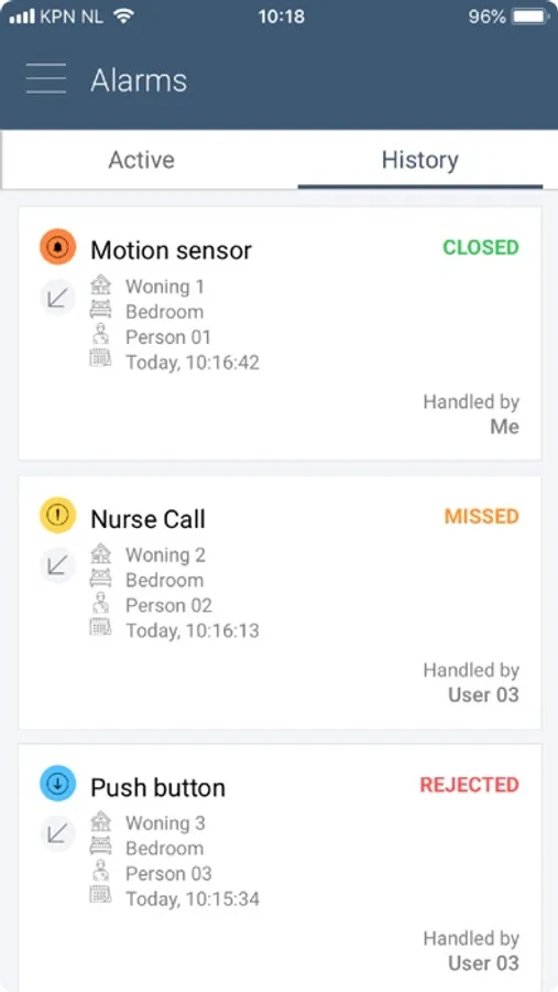 If an alarmcall is missed because, for example, if the user is on the phone. The user can see in the history tab what alarm he missed and who handled the alarm. The VieProApp is a reliable app that so no alarm messages will be lost. The app is simple and convenient to use.