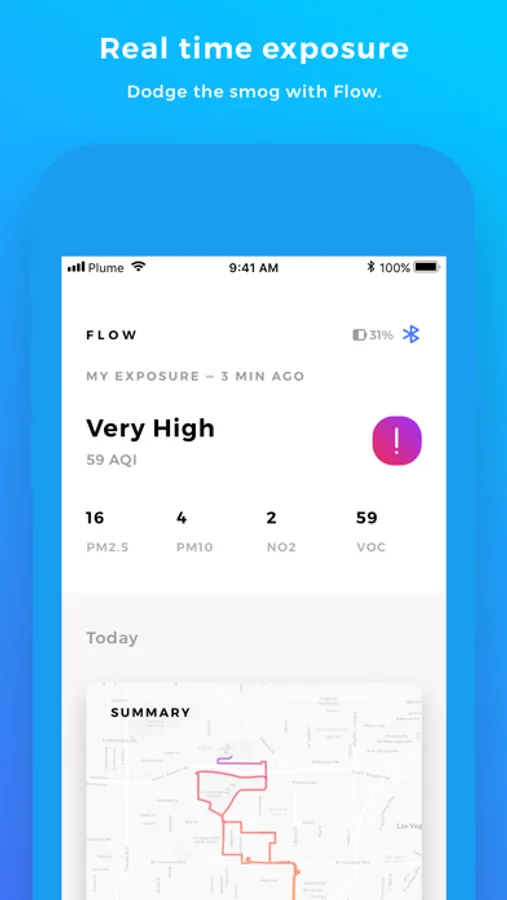 Avoid the most polluted places: Flow tracks air pollution variations around you in real time, so you can find clean air.