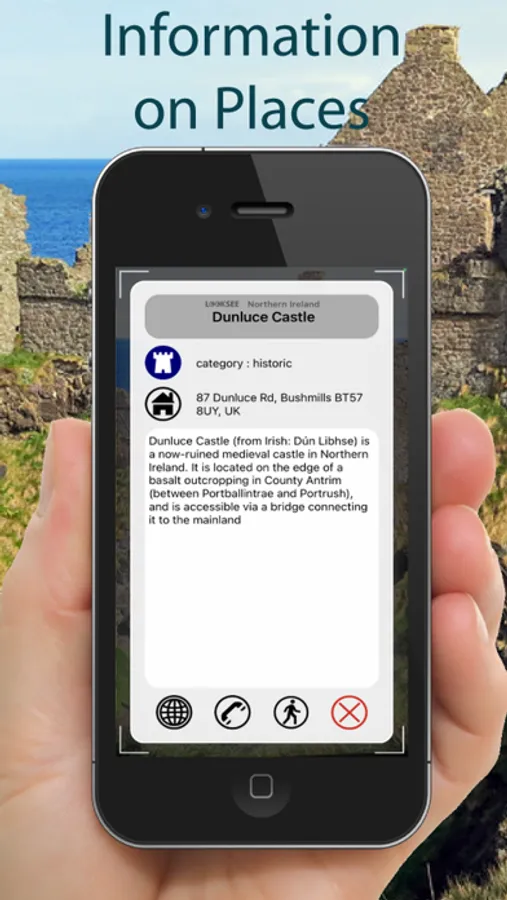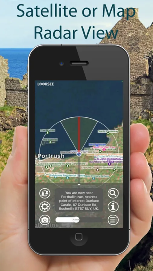 Looksee AR for Northern Ireland is an Augmented Reality (AR) viewer that you can use to find places of interest directly within your phone's camera view and add fun, knowledge and interest to your adventures and tours.