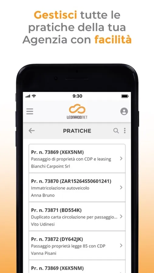 Hai sempre a portata di mano le tue pratiche, i clienti e i veicoli: trovi tutte le informazioni importanti, contatti e i documenti associati.