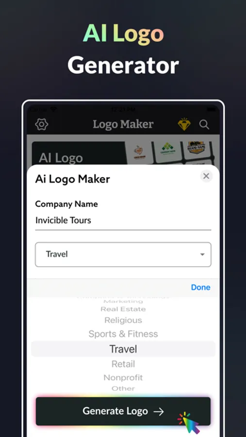Create professional logos effortlessly with the power of the AI Logo Maker app.
