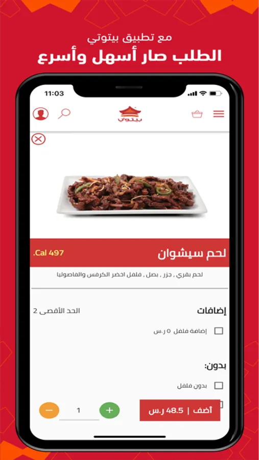 في بيتوتي... نحن ملتزمون دائماً بتقديم ألذ الأطباق الصينية، بمذاق شهي يشبع رغباتك ونكهة رائعة تدلل حواسك، لتعيش معنا أجواء أصالتها وتكتشف من جديد متعة عراقتها. فنحن نسعى دوماً أن ينعم عملاؤنا بتجربة فريدة من نوعها تدوم لذتها في ذاكرتهم لحين زيارتهم التالية لنا.