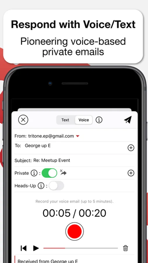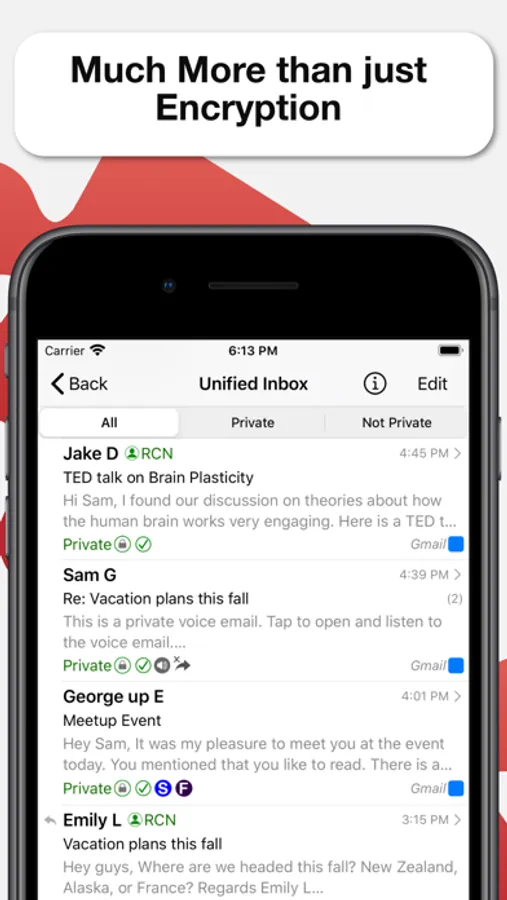 EPRIVO is much more than encrypted email. EPRIVO is the only private email service with a wide range of fine-grained privacy controls - allowing future control in both recipient devices and cloud. It is also the only private email service that enables you to send voice and text emails using your existing IMAP email addresses (Exchange accounts require IMAP access). You can also send secure emails to non-EPRIVO users. Ideal for secured communication for employees working remotely and consumers.