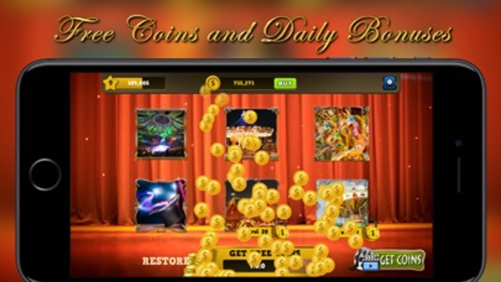 Play 5 reel slots with wilds, scatter and bonus! Get a free coin bonus every 4 hours and earn extra prizes with fun mini games.