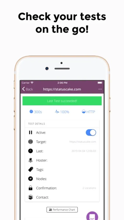 The StatusCake iOS app gives you full visibility of your StatusCake.com uptime monitoring account on the go through your Apple iPhone or iPad mobile device.